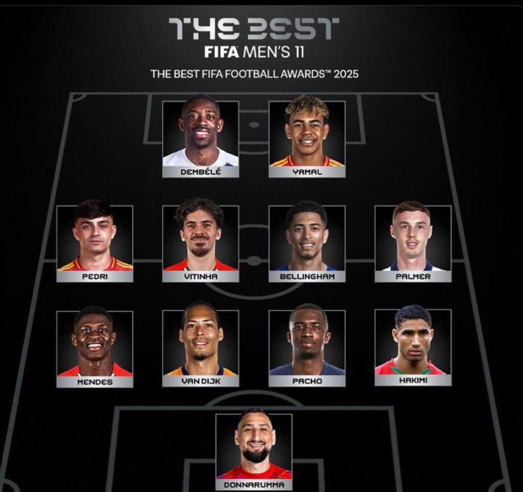 La FIFA a également dévoilé le Men’s World XI 2025, avec une présence marquée du Paris Saint-Germain. Dans le onze masculin, on retrouve notamment Gianluigi Donnarumma dans les buts, ainsi qu’Achraf Hakimi et Willian Pacho en défense.